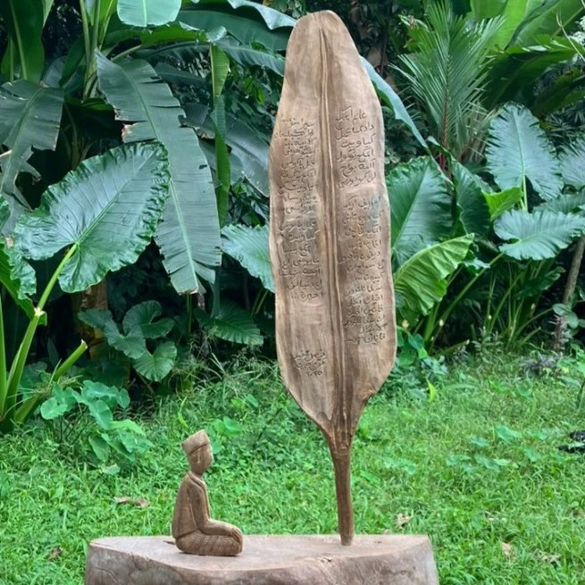 Jadi singkatnya, Faisal menawarkan paket lengkap suatu karya yang isinya penuh dengan pengetahuan semesta. DIa menyebut ini sebagai medium manuskrip iluminasi, karena memadukan aksara Arab Pegon, figur simbolik, ukiran, dan unsur performatif. Jadi, bukan cuma keindahan estetik yang Faisal kasih, tetapi juga tawaran aspek filosofis dalam Endog Jagad.