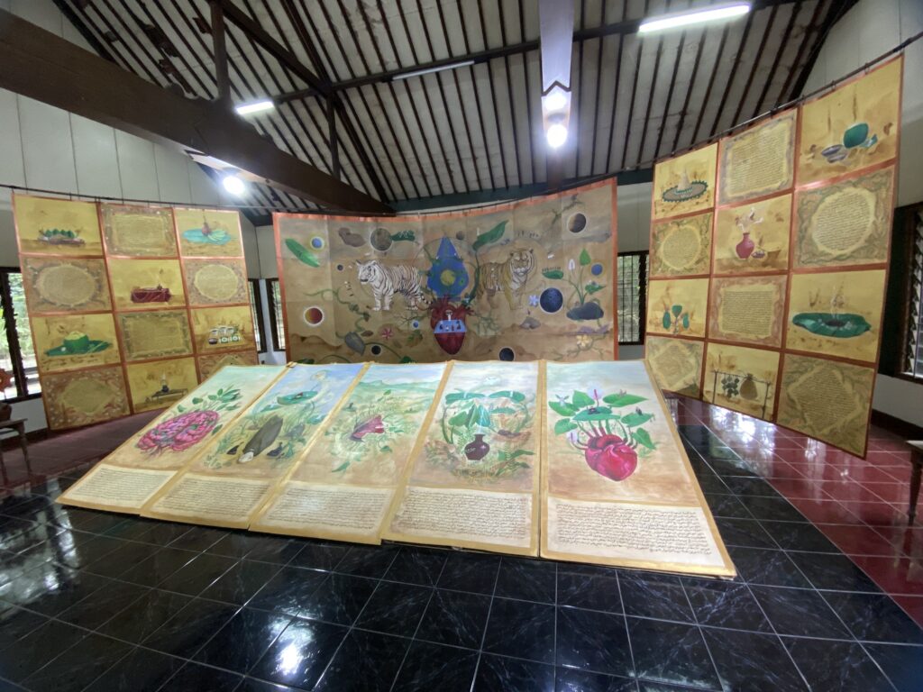 Perjalanan berlanjut ke Plataran Djoko Pekik. Di sini, ringkasan perjalanan maestro itu dirangkum dalam satu ruang penuh hormat. Di samping studio Djoko Pekik, ada karya Faisal Kamandobat. Seniman asal Cilacap ini dikenal sebagai penulis, penyair, sekaligus perupa. Ia mendirikan Sanggar Matur Nuwun di kampung halamannya, sebuah madrasah dan studio inklusif yang memupuk kreativitas serta literasi anak muda.