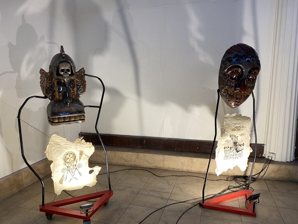 Terdapat tujuh topeng yang dibaluti kulit wayang khas Jawa. Topeng-topeng ini menggaungkan permasalahan yang menyelimuti tanah Papua, seperti sulitnya mencari dan menyebarkan informasi tandingan demi melawan dominasi pemberitaan rezim Indonesia. Salah satu topeng yang dipamerkan menunjukkan wajah yang kedua mata dan mulutnya dicengkeram oleh tangan raksasa.