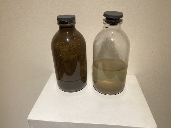 Lumpur hitam pekat itu, yang baunya menusuk, warnanya mengerikan, kini tersimpan rapi dalam botol-botol plastik yang dipajang di rak. Seperti spesimen laboratorium, atau mungkin prasasti peringatan. Di bawahnya, sebuah buku catatan riset terbuka sebagai saksi bisu perjalanan sang seniman menelusuri jejak racun industri.